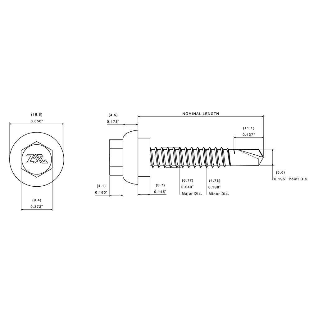 1/4″ ZAC SD2 Tornillo Autoperforante de Metal, HWH (3/8″)
