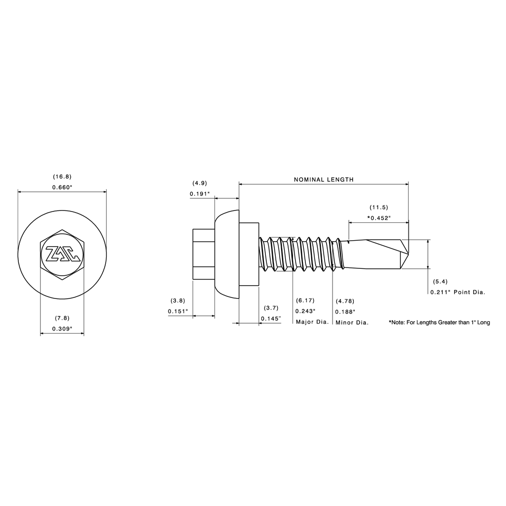 1/4″ ZAC SD3 Tornillo Autoperforante de Metal, HWH (5/16″)