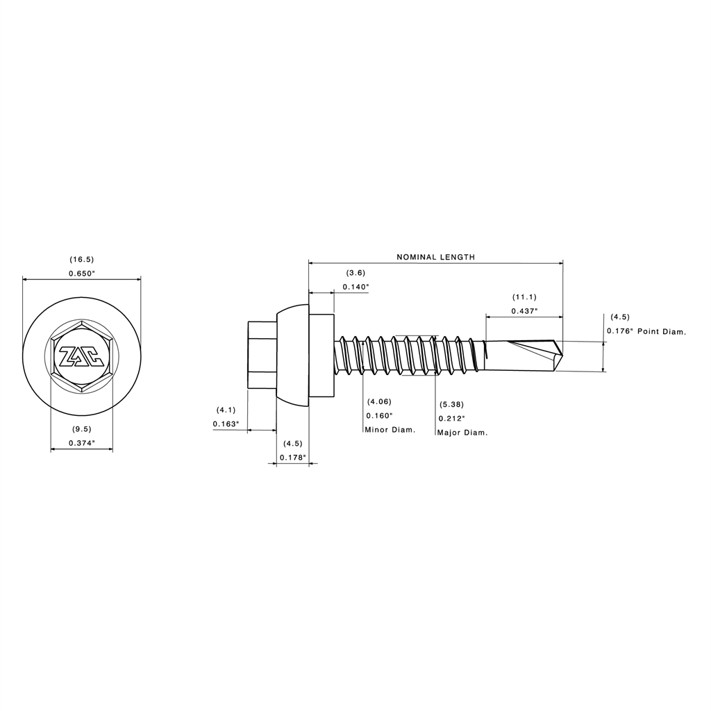 | 794515 | 1-1/4″ | 32 | Completa | 0.60″ | 15 | ZSD3-#12×1-1/4-CHW3/8-N | 42 | 2,000 |