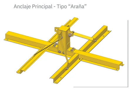 Anclajes que tensan una línea de cable de acero, la cual funciona en conjunto con arneses de seguridad.